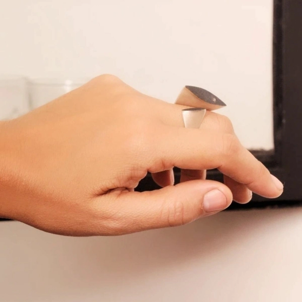 No início da minha trajetória, enquanto preparava peças autorais para a exposição Design do Novo, comecei a fabricar um anel a partir de um desenho que havia feito à mão.