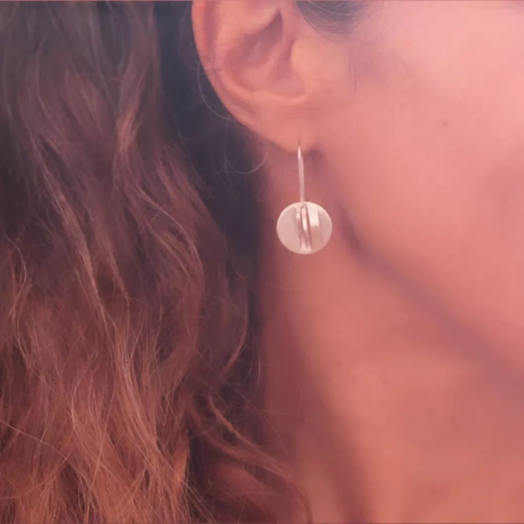 Brinco artesanal de alta qualidade, feito em prata com design autoral e atemporal.